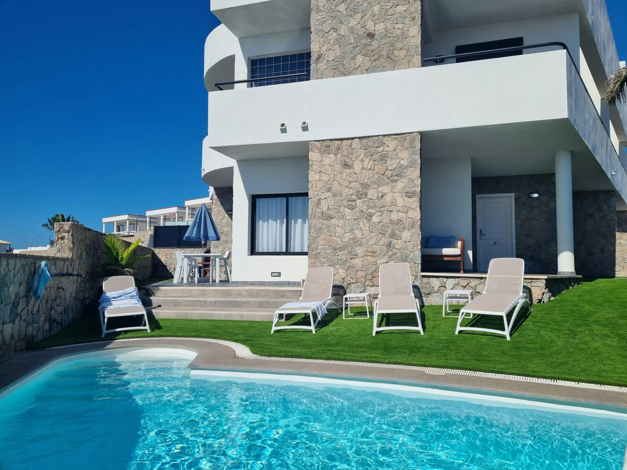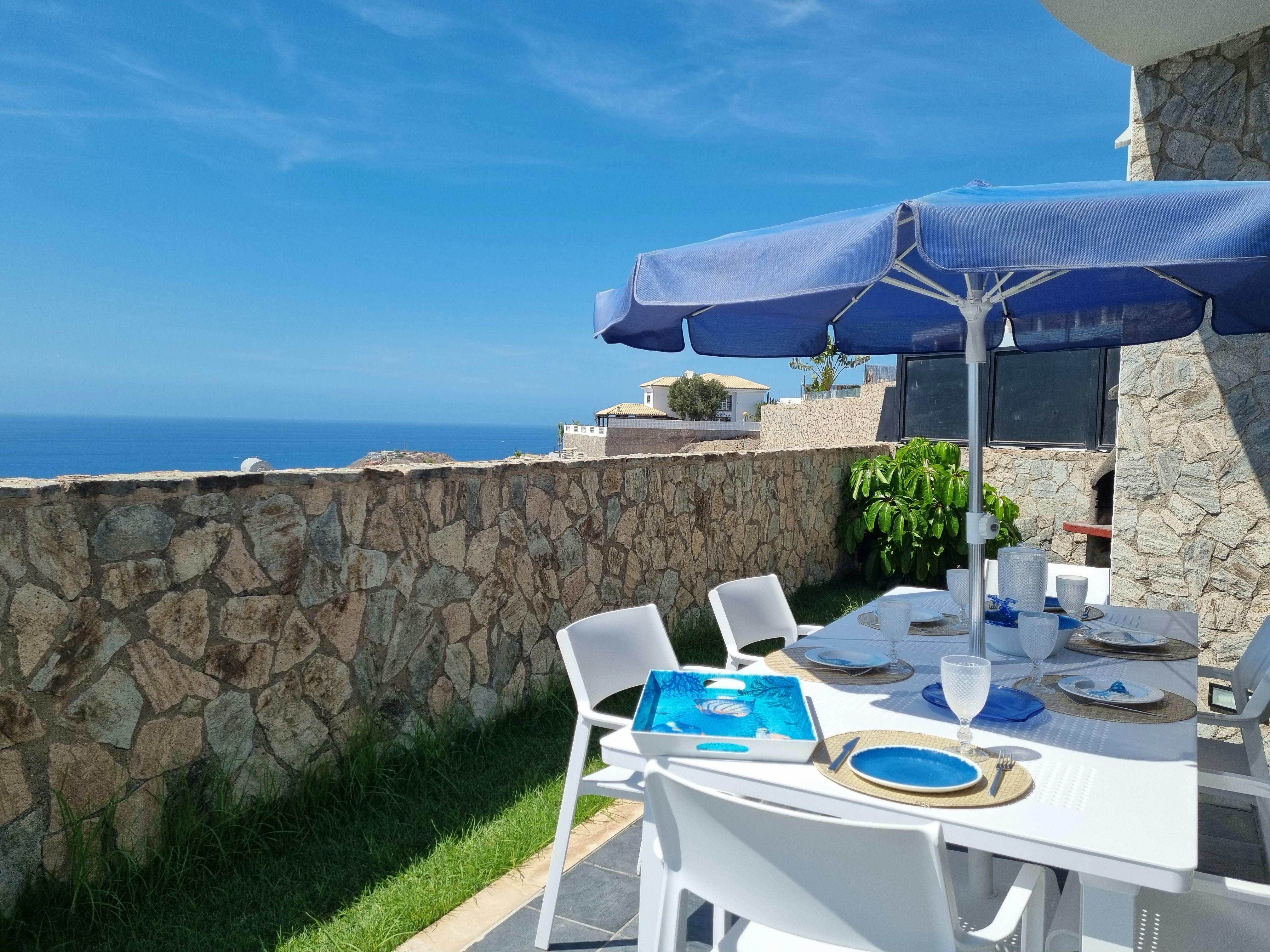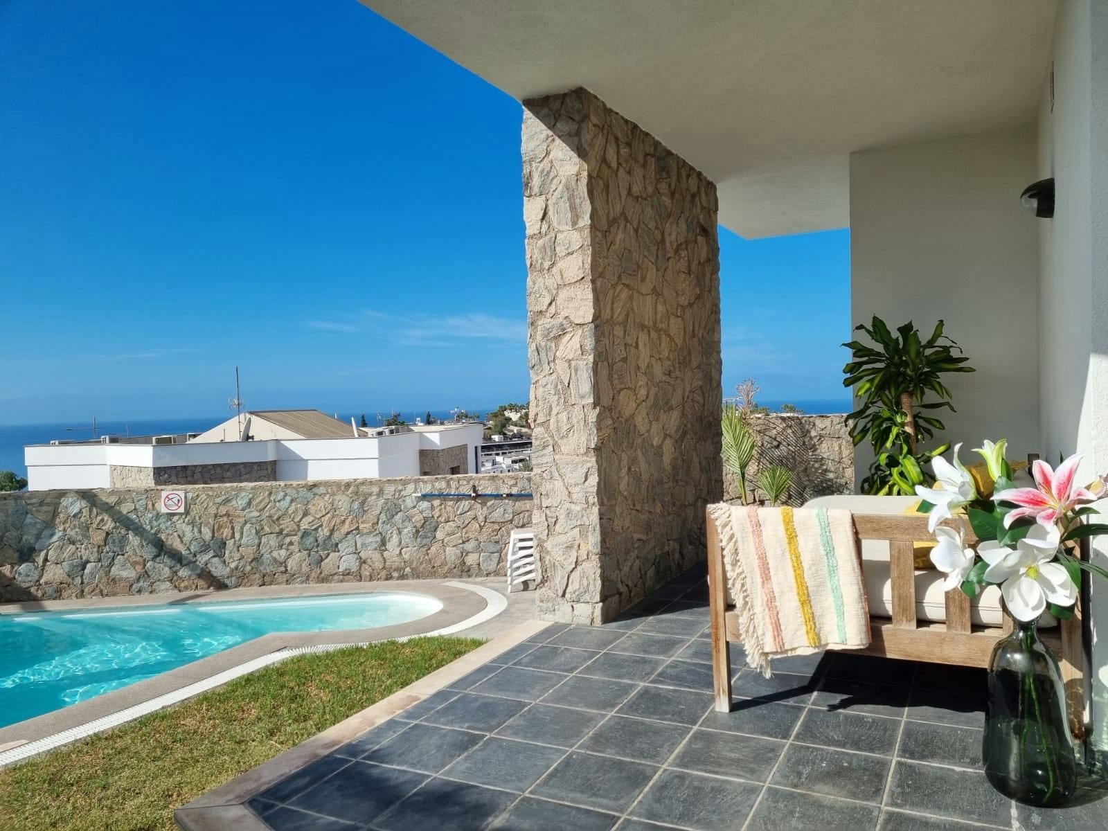 Villa The Views is a south-facing luxury villa in Puerto Rico–Amadores, Gran Canaria, featuring a private pool, panoramic sea views, three suites with private terraces, air conditioning, fast WiFi, private parking and a fully equipped open-plan kitchen. Designed for families, couples and friends seeking privacy and sunshine year-round, the villa offers a quiet hilltop setting close to Amadores Beach, Puerto Rico Beach and the Europa Shopping Center. Outdoor spaces include a Balinese bed, sun loungers, chill-out lounge, dining area and charcoal BBQ, all surrounded by all-day light and 180º Atlantic views. Ideal for guests looking for a premium, peaceful coastal villa with easy access to beaches, restaurants, transport and coastal walks.